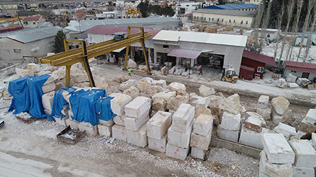 İt is our production place where we turn the blocks into strips with big machines after we bring them. We also use it as warehouse for blocks. The factory is built on 5.000 sqm and we have 3 big cutting machines.